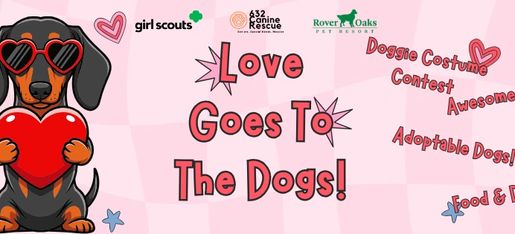 Join us for a love-themed community fundraiser featuring adoptable dogs, food, drinks, and a doggie costume contest with fun prizes. To learn more, head to our events page for full details.